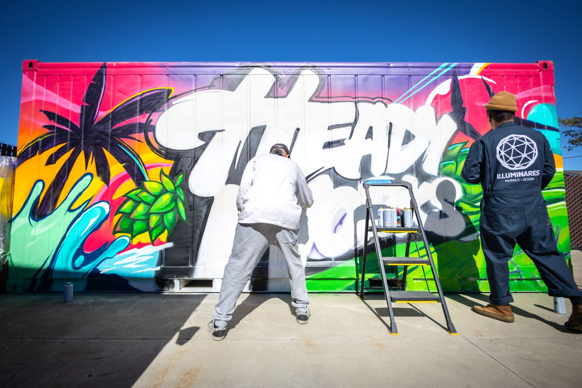 “When we opened the taproom, we knew we wanted to fill the space with color and local art,” said Creative Director AJ Mahon. “The Illuminaries are homies of mine, so it was a no-brainer to give them a container to paint.”