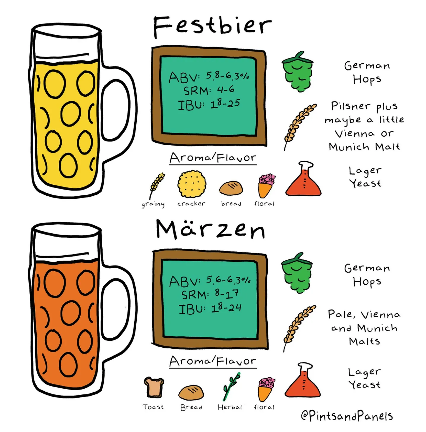 - Märzen or Traditional Oktoberfest → means darker, toastier, amber lagers, with a malt profile that is slightly more pastry-like